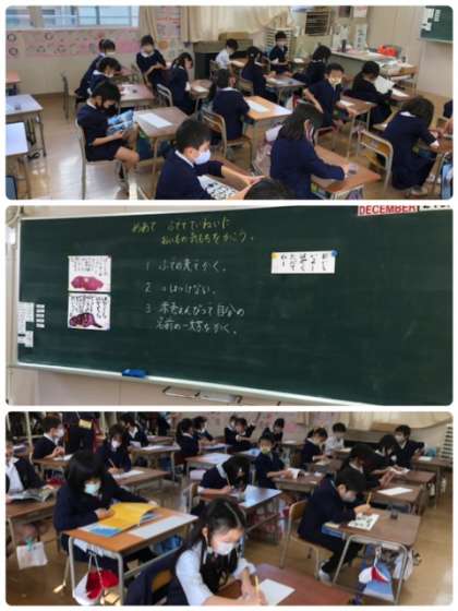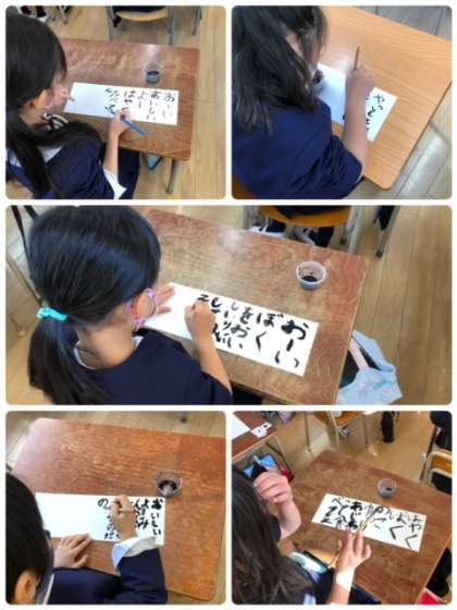 学習園で収穫したさつまいもを生活科では料理して食しましたが、図工科では、絵に描いて心の声を記して完成です。墨の字が何とも言えないぐらいいいですね。