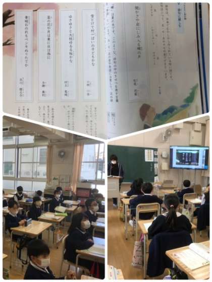 3年生が国語科の時間に俳句を学習しました。松尾芭蕉などの俳句にふれ、俳句について学習を深めています。