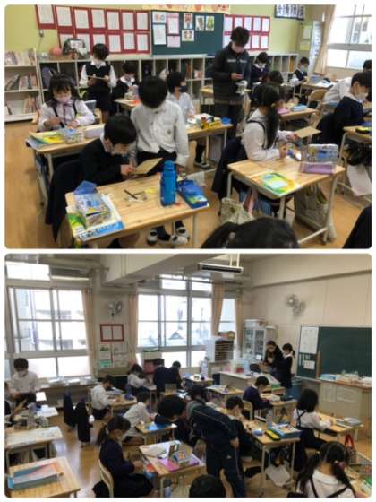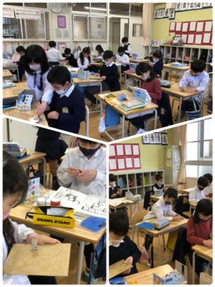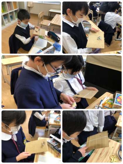 理科で磁石の学習をしています。ダンボール紙に迷路を描いて、磁石で迷路を進んでいます。