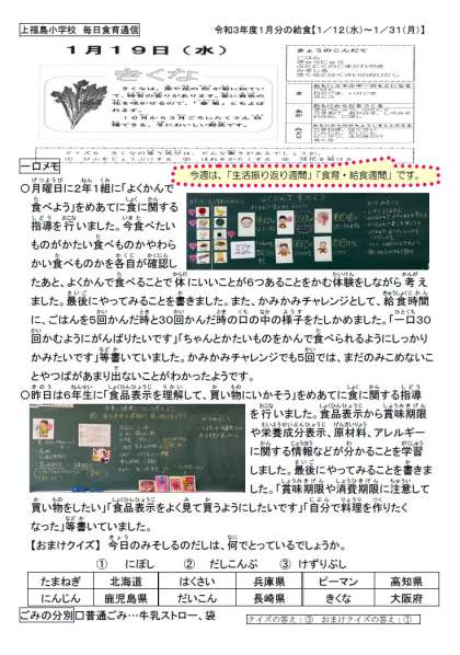 月曜日に2年1組、昨日6年生に食に関する指導を行いました。