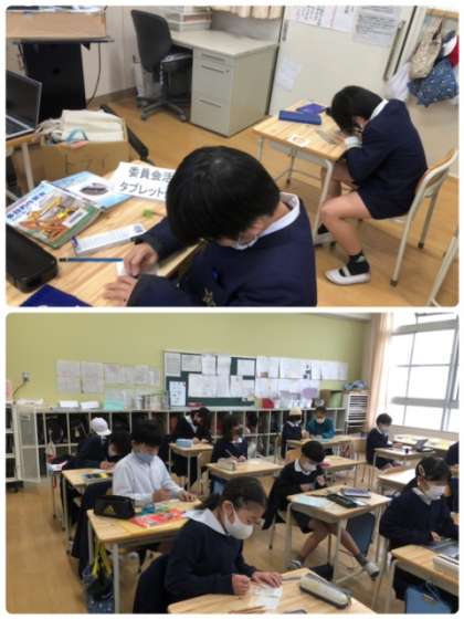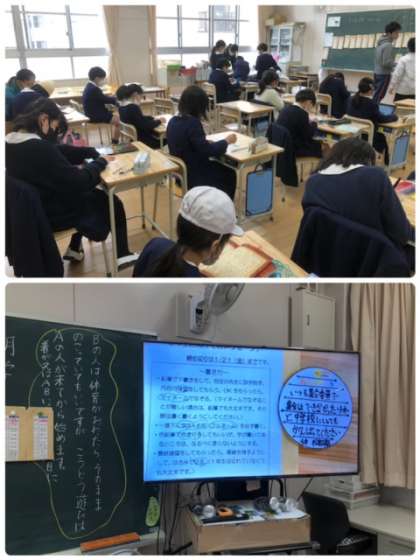 3月で小学校を卒業する6年生に向けて、メッセージを作成中です。心のこもったメッセージは書けたかな?