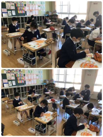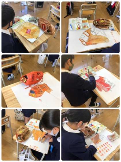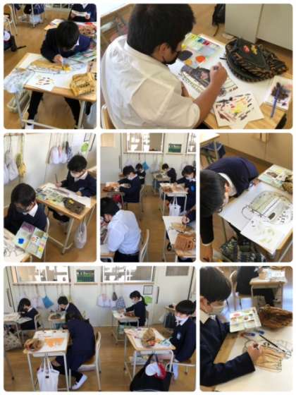 先日の下絵から進み、今日は色塗りです。下絵もいいからか色のノリがいいです。色褪せた感じや、質感の違いが色で表現できています。