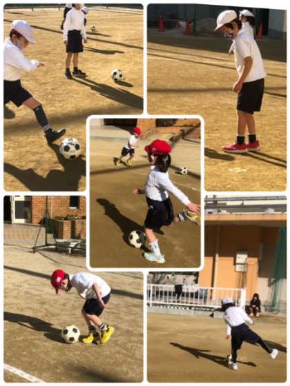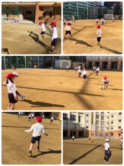 今日も体育科の学習でボールを蹴っています。以前に比べて、上手に、そして遠くまで蹴れるようになりました。寒さに負けず頑張っていました!