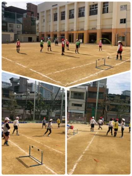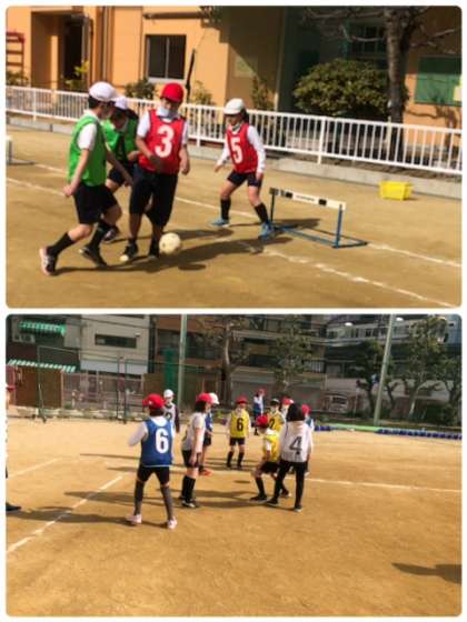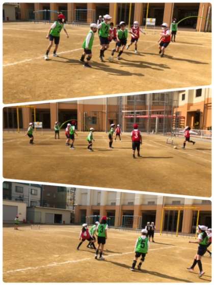 寒空の下ですが、太陽が照っていて少しほっこり!そんな中、4年生が元気にサッカーをしています。