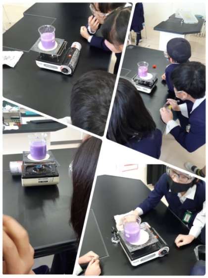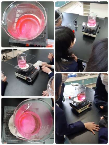 理科の学習で、水の温まり方について学習しました。しっかりと予想を立ててから実験に臨みました。おもしろい実験になったようです。