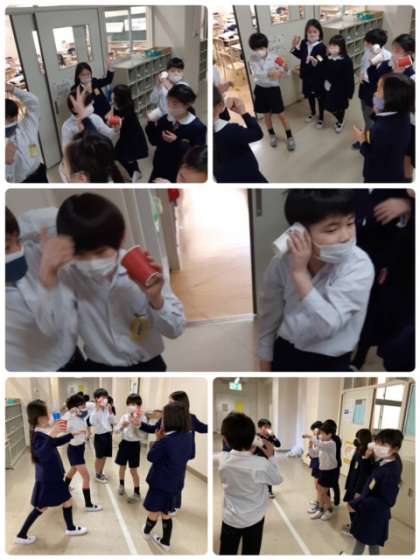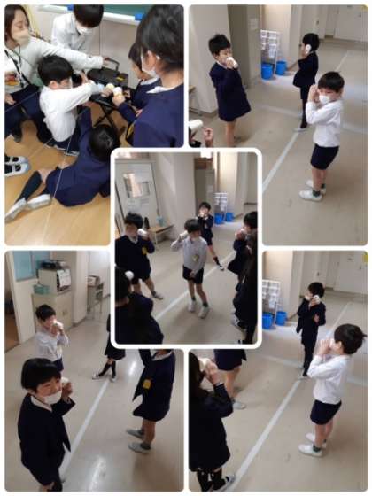 3年生の理科の学習です!長い糸電話は聞こえるのか?ラジカセの音もちゃんと伝わるのか?とても楽しそうに実験しています。