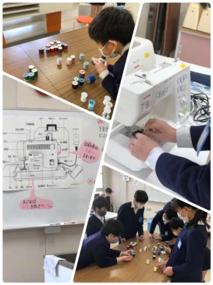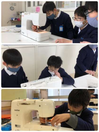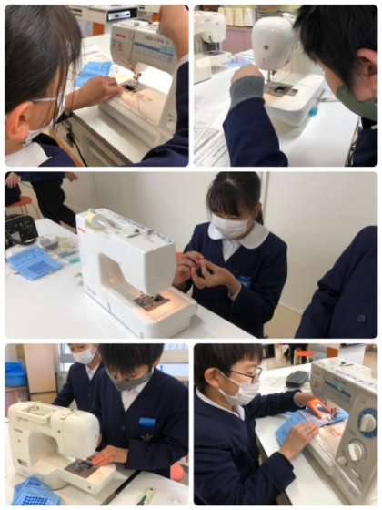 5、6時間目に5年生がミシンの練習をしました。下糸、上糸に手こずっていましたが協力して頑張っていました。