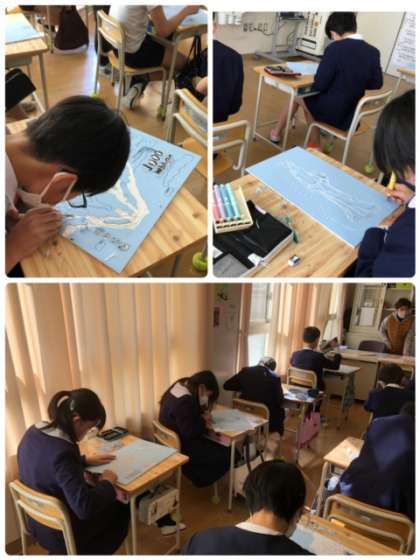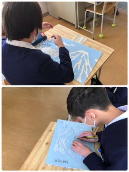 図工科で版画をしています。綺麗に描き写した絵を丁寧に彫っています。いい作品が出来そうな雰囲気です!
