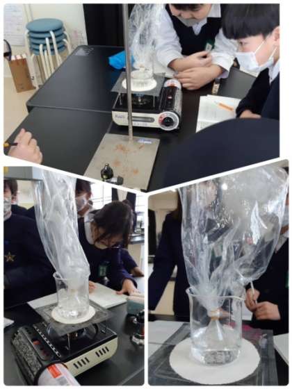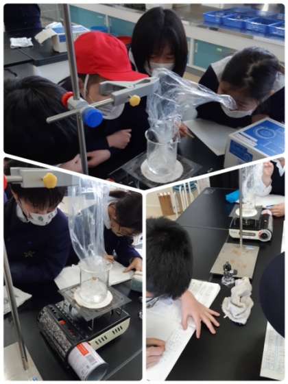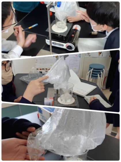 4年生の理科で、沸騰した時に出るあわの行方について考えています。目の前の実験に釘付け!結果はどうなったかな?