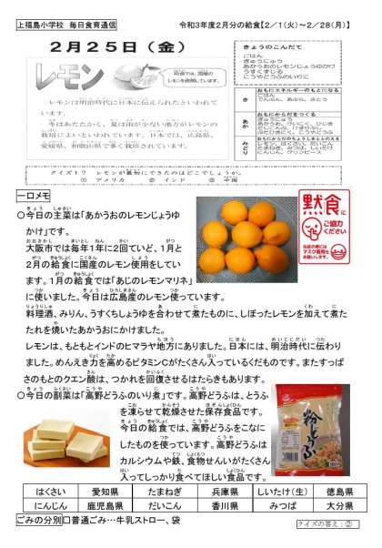 今日の主菜は、広島県産のレモンを使用した「あかうおのレモンじょうゆかけ」です。