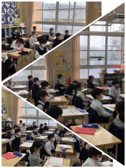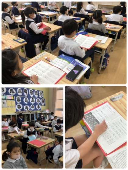 まだまだ元気に歌うことはできませんが、覚えることはできます。1年生が校歌を歌う機会がなく、ただいま学習中です。