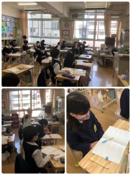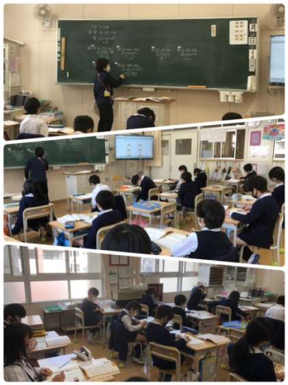 昨日の公開授業を受けて、本日はその練習問題をしています。よく理解できたようで、たくさんの手が挙がっています。