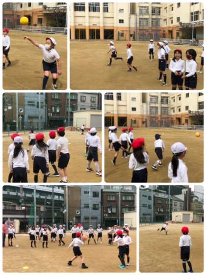 ボール遊びで、ボールの投げ方を練習した後は実践練習です!ドッジボールで大白熱です!