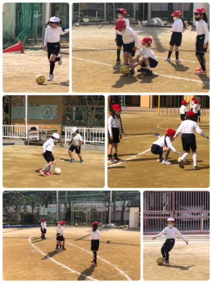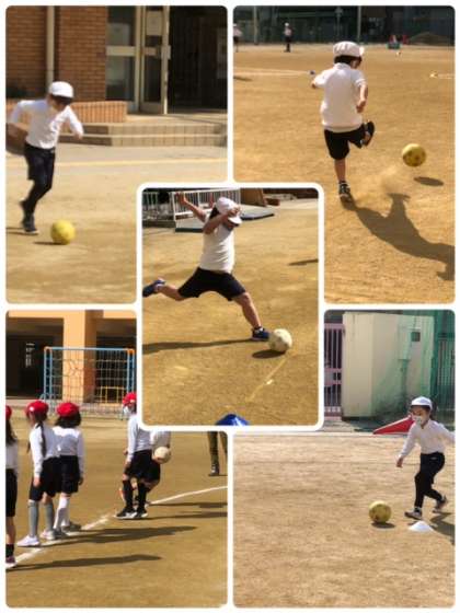 体育科でのボールけり遊びの様子です。しっかりと助走をとって、ボールを蹴り飛ばしています。上手になりました。