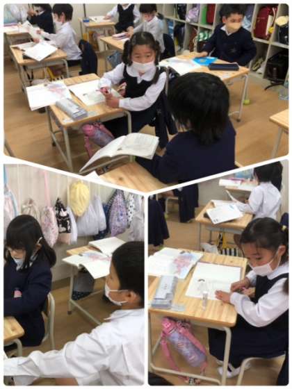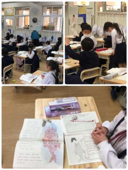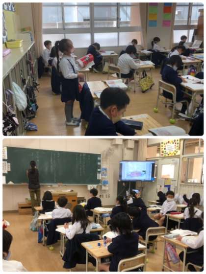 国語科「スイミー」の学習で、登場人物について考えています。しっかりと自分の考えを発表している様子も見られます。