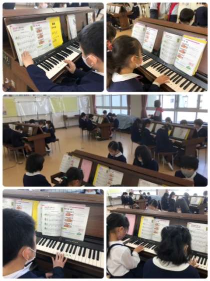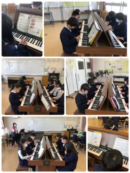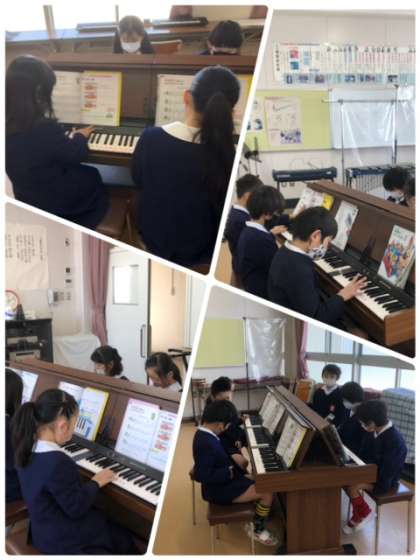 音楽科の授業です。コロナ禍と言うこともあり、鍵盤ハーモニカが演奏できません。代わりにオルガンで練習しています。