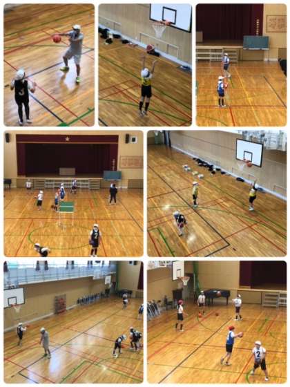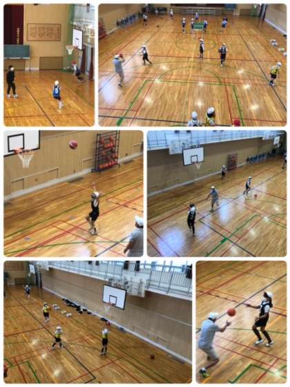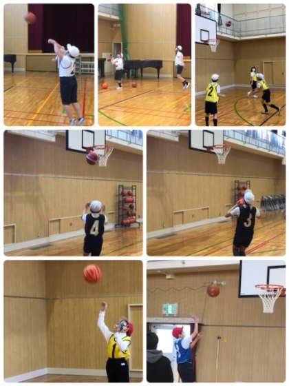 講堂で5年生がバスケットボールをしていました。パスをもらってゴールに走り込みシュート!入ったり、入らなかったりですが、一生懸命頑張っています。