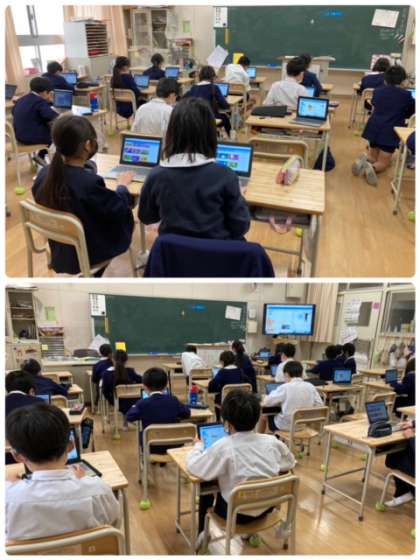 総合の時間!1人1台用PCに入っているスクラッチアプリを使い、学習をしています。