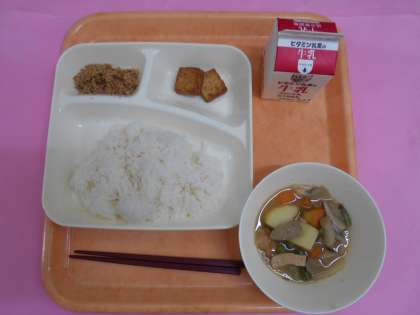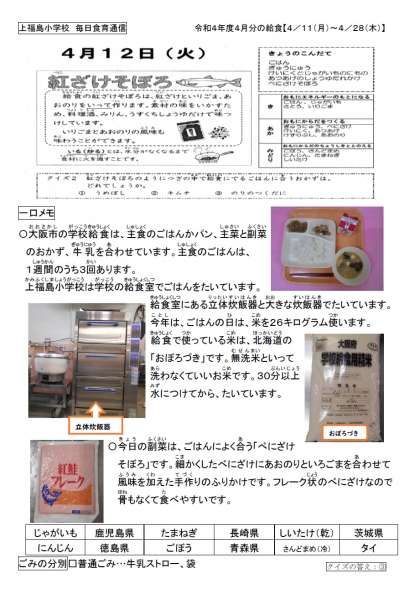 上福島小学校では、学校の給食室でご飯を炊いています。