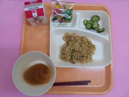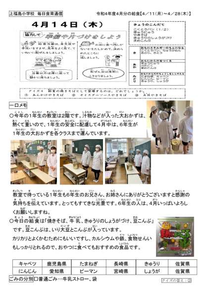 6年生が、1年生のおかずをクラスに運んでくれています。