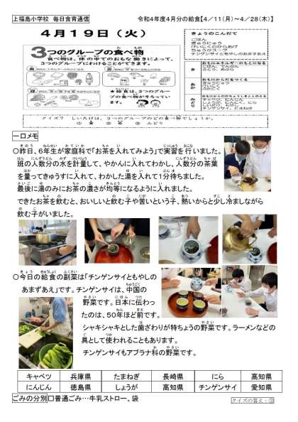 昨日、6年生が家庭科で「お茶を入れる」実習を行いました。