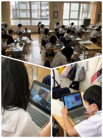 タブレットを使って、プログラミングやNHKのデジタル教材を見ています。