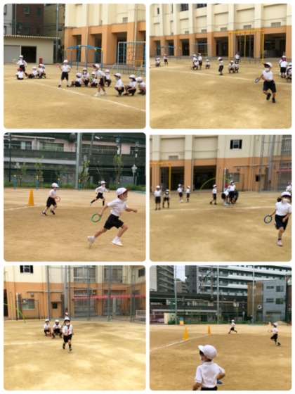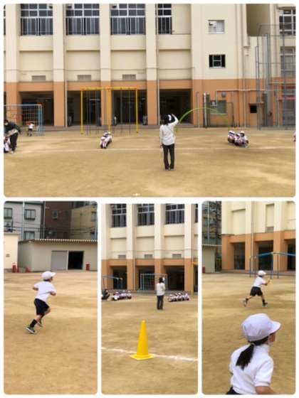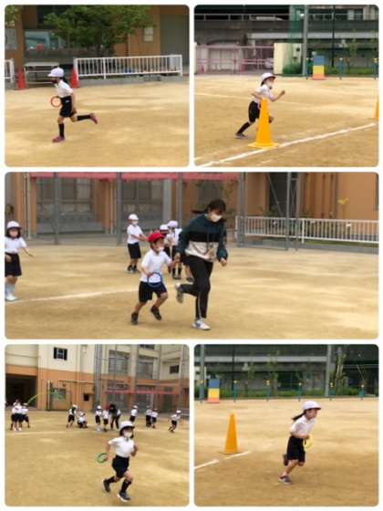 広い運動場を、一生懸命走っています!楽しそうですね!