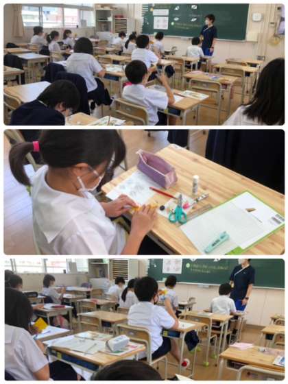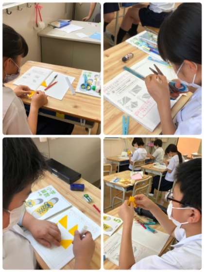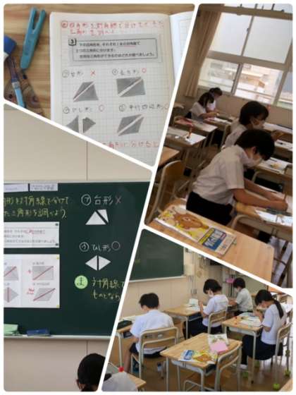 こちらは、いろいろな四角形を対角線で切って考えているようです。何かわかったかな?