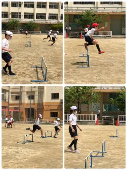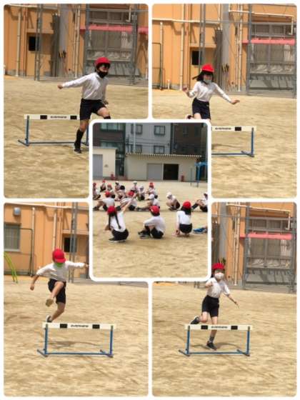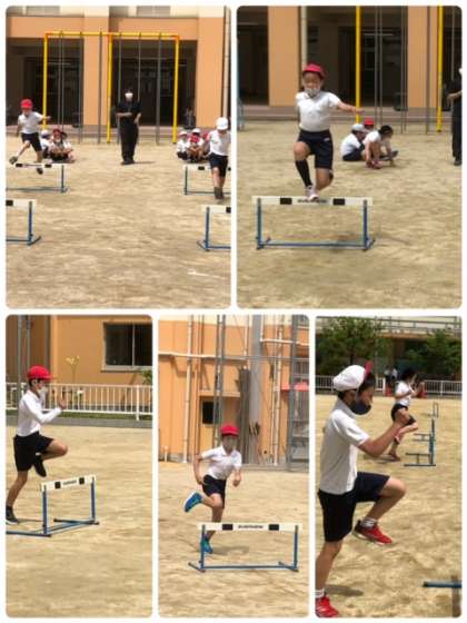ハードル走です。インターバルもスムーズに走り、ハードルもまたぐように飛び越える!なかなか難しそうです!