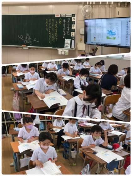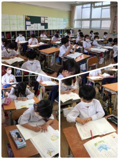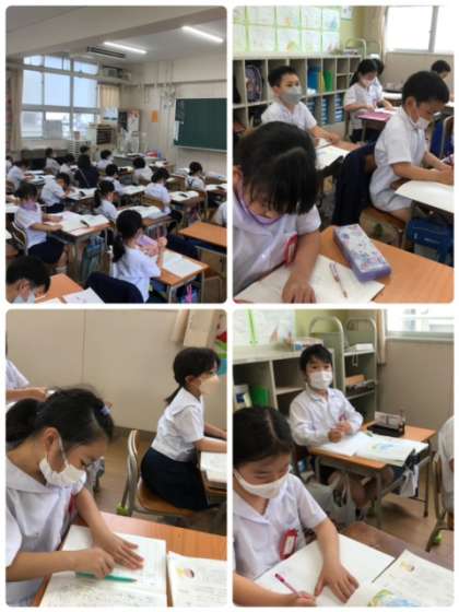 国語科の学習、風のゆうびんやさんを読んで主人公の気持ちについて考えています。表情から一生懸命考えている様子が伺えますね。