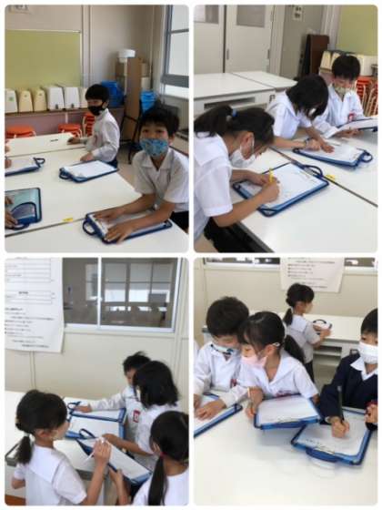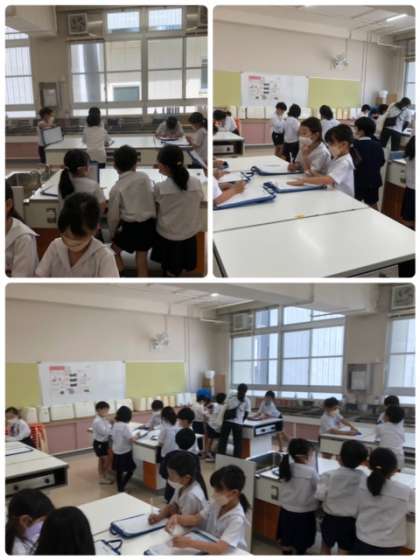 生活科の学習で、学校探検をしています。馴染みのない家庭科室にきました。ここはどこ?
