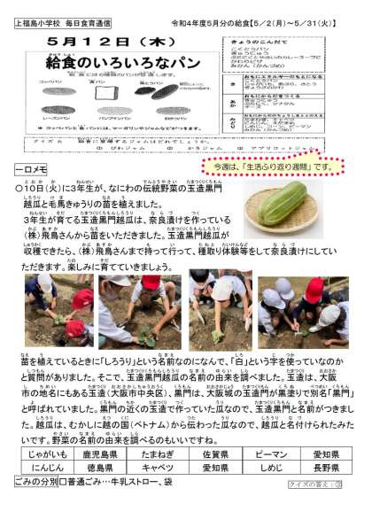 10日(火)に3年生が「玉造黒門越瓜」の苗を植えました。
