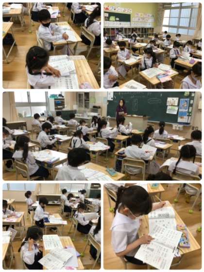 算数科の学習で、練習問題をしました。そのあと、自分達でも確認しながら丸つけをしました。