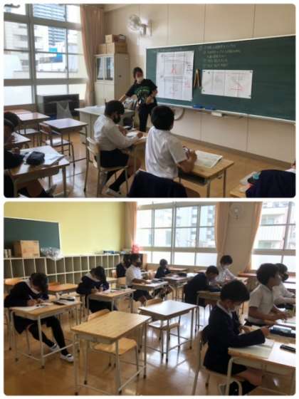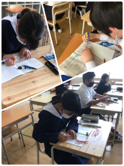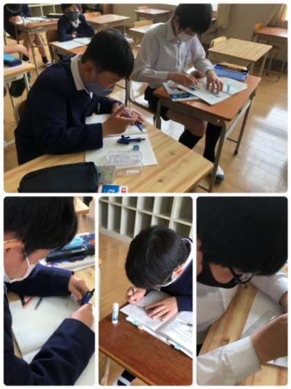 昨日に引き続き、作図をしています。点対称は、なかなか難しいようで苦戦しています!