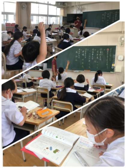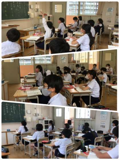 5年生の国語は、漢字の分類をしていました。漢字は4つのグループに分けることができるようで、一生懸命どれに当てはまるか考えていました。