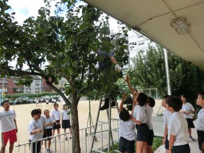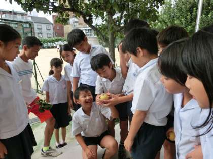 今日は、残っている実を収穫しました。少しですが、子どもたちに味わってもらえたらと思います。