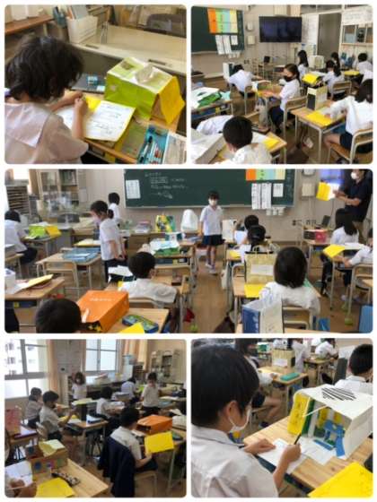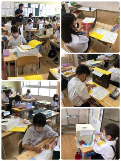 先日作った、袋の中のおもしろい世界について、互いに鑑賞し合う学習です。