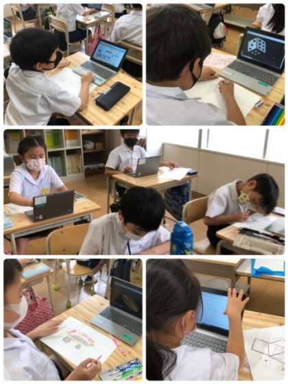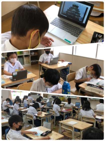 図工科の学習で乗り物を書くようです。タブレットで、いろいろと題材を探しながら、鉛筆を動かしています。どんな作品ができるかな?