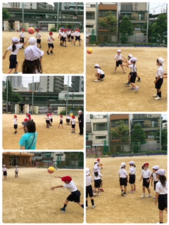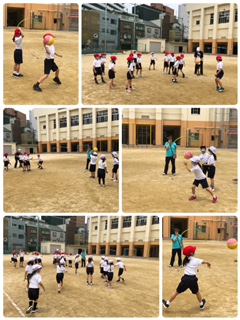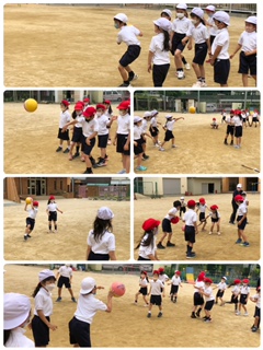 ボール遊びで、投げることを学習した後、ドッジボールをしました。経験のない子も多く、戸惑う姿も見られました!でも、楽しそうでした!