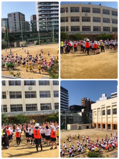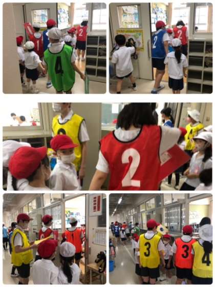 木曜日の朝は、児童集会です。1年生を6年生が迎えに行き、その後運動場で楽しくゲームをします。
