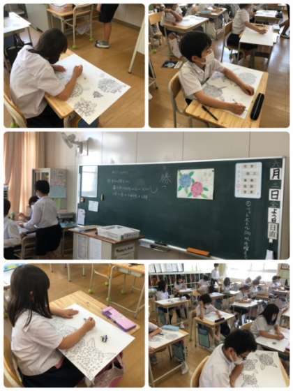 4年1組 アジサイを描こう