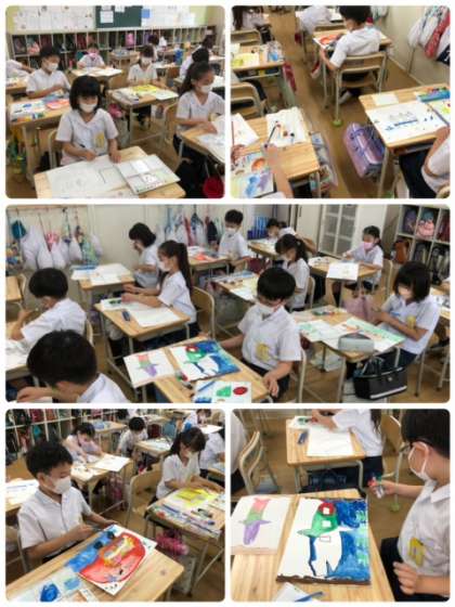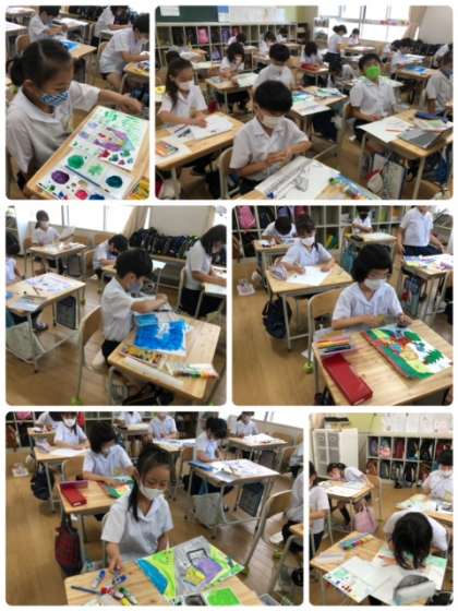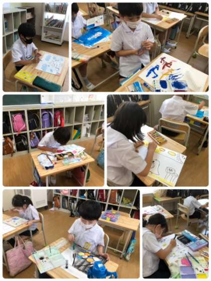 先日の続きで、乗り物を描いています。ユニークな乗り物もたくさんあり、色も鮮やかです!あったら良いなぁ、こんな乗り物!