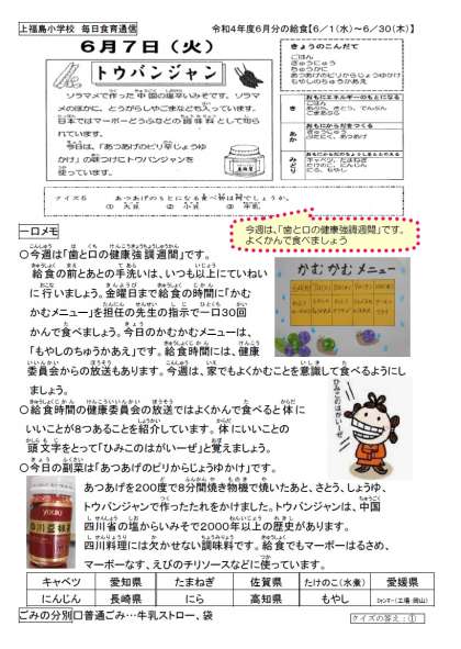 今週は「歯と口の健康強調週間」です。よくかんで食べましょう。