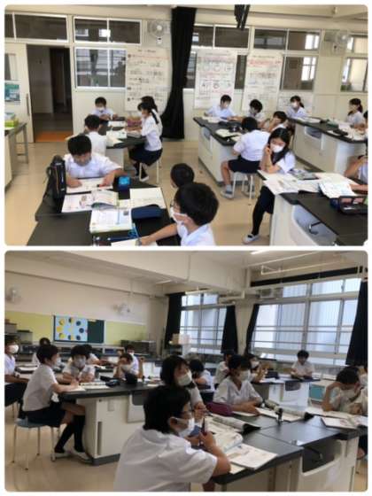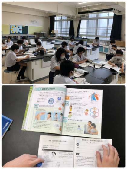 今日も理科の学習は、ヒトの体についてです。血液の流れや臓器について確認しています。