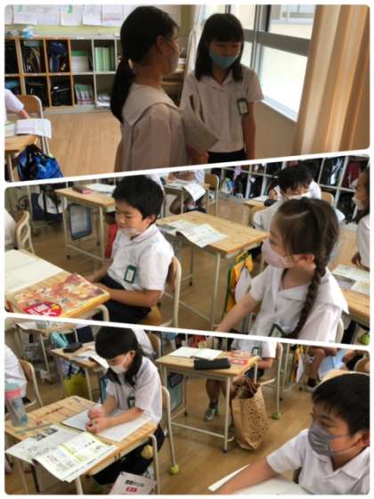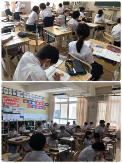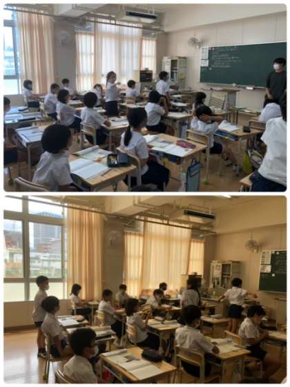 社会科の学習です。人口は増えたのに、なぜ給水量は変わらないままなのか?みんなで頭を悩ませながら考えています。ですが、答えが見つかったようです!