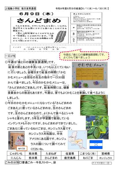 今日のかむかむメニューは「さんどまめのごまあえ」です