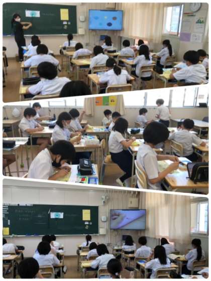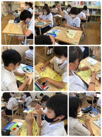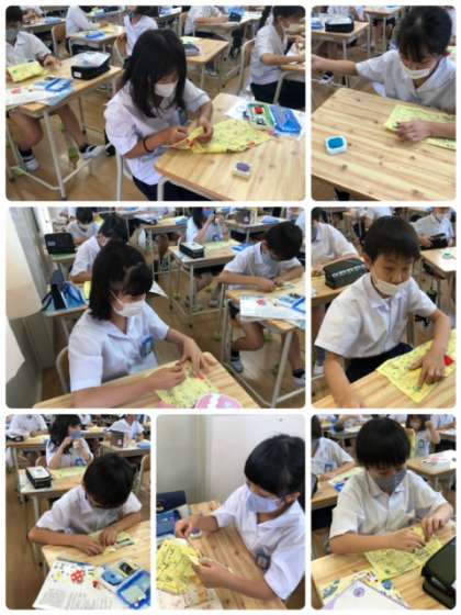 家庭科の学習で、ボタン付けをしています。細かな作業に苦戦する姿も見られましたが、何とかできたようです。よく頑張りました!