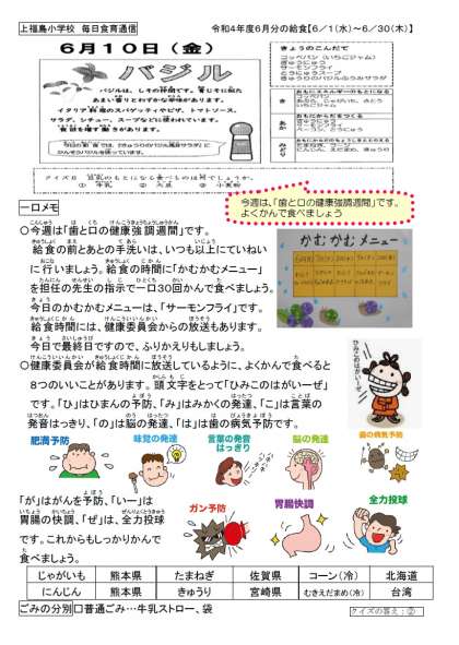 今日で歯と口の健康強調週間は終わります。これからもよくかんで食べましょう。