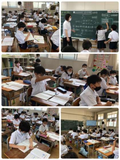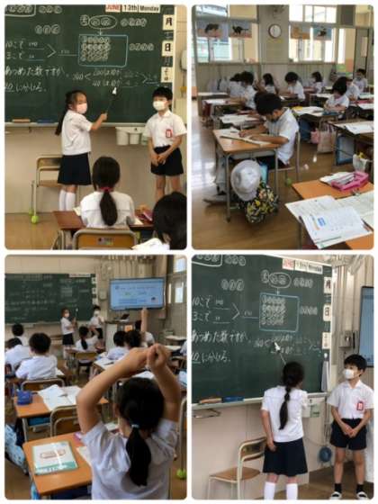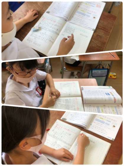 、絵に描いて考えています。描いた事をちゃんと説明できたかな?
