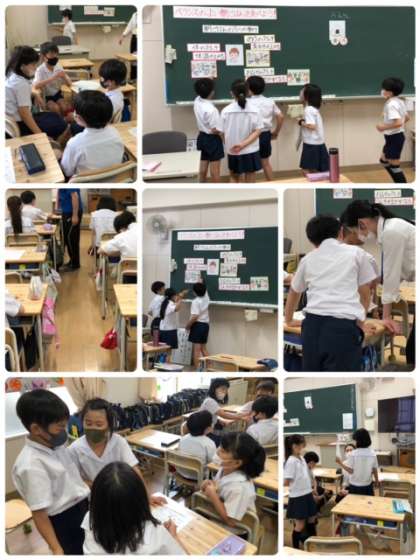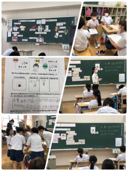 3年2組も、今週栄養教諭の実習に来られている人の校内向け公開授業がありました。相談もしながら、バランスの取れた朝食について考えることができました。